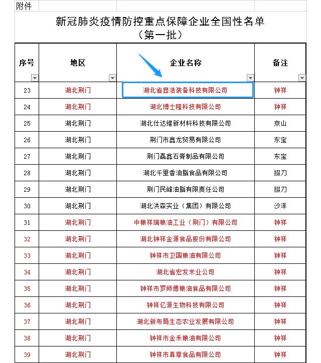 湖北顯浩被省經信廳列為全國新冠肺炎疫情防控重點保障企業